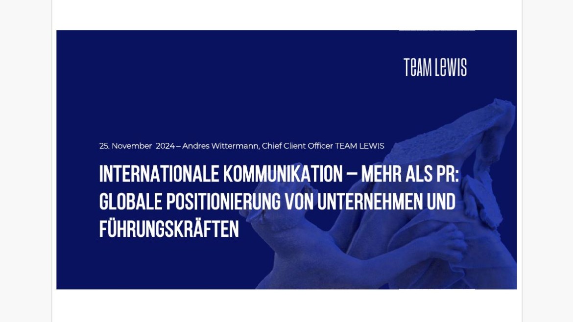 Team Lewis ist eine globale, unabhängige Communications- und Marketing-Agentur mit Technologie als Kernkompetenz und branchenübergreifendem Fokus. Im Zentrum ihrer Arbeit stehen Strategie- und Positionierungsberatung, Zielgruppen- und Markenplanung, Botschaftsentwicklung sowie die Unterstützung bei internationaler Expansion. Ergänzend bietet Team Lewis digitale Serviceleistungen, Consumer- und B2B-PR sowie Content-Planung und -Kreation als Teil ihrer integrierten Kommunikationsberatung.