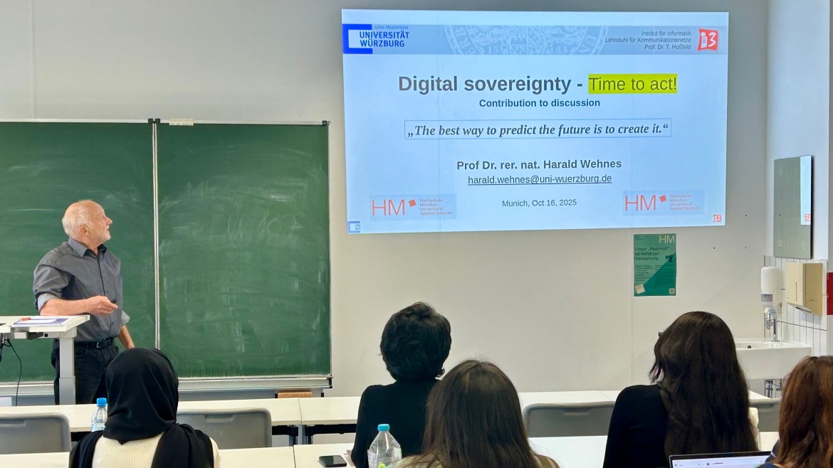Workshop zu digitaler Souveränität mit Studierenden der Studienrichtung DTM und Prof. Dr. Harald Wehnes