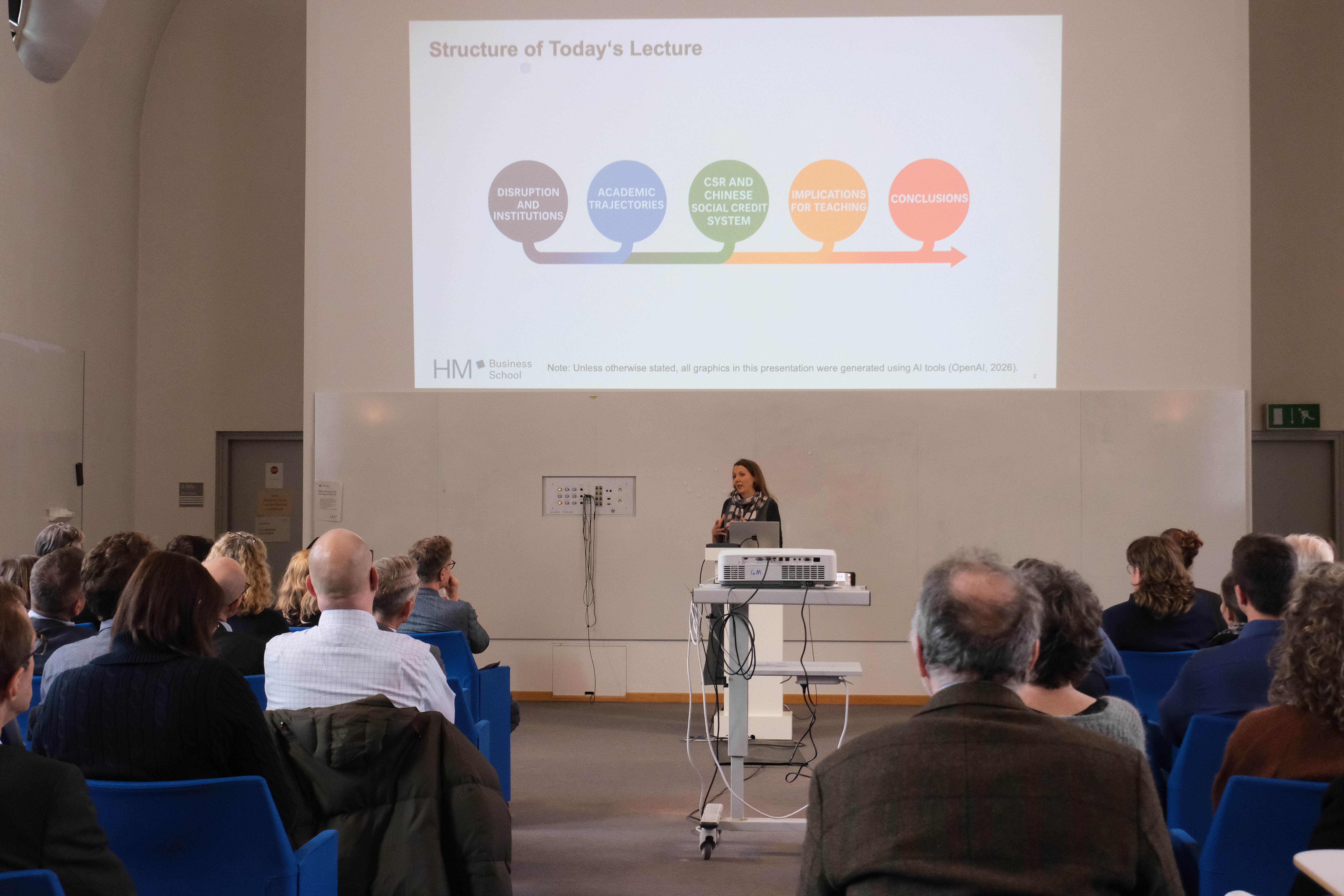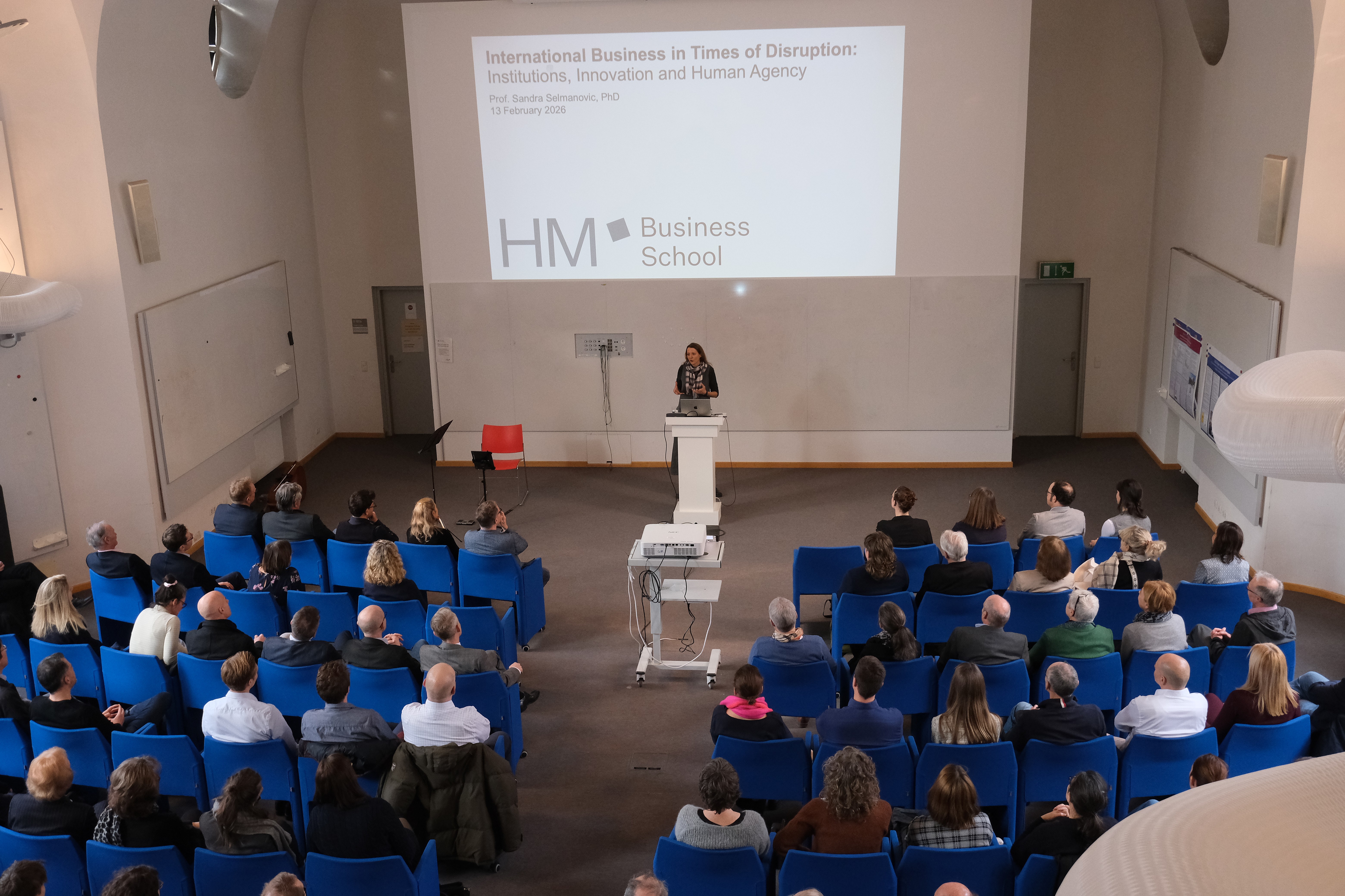 Am 13.02.2026 beendete die HM Business School das Wintersemester mit der Dienstbesprechung und den Antrittsvorlesungen von Prof. Dr. Sandra Selmanovic und Prof. Dr. Verena Tobsch.