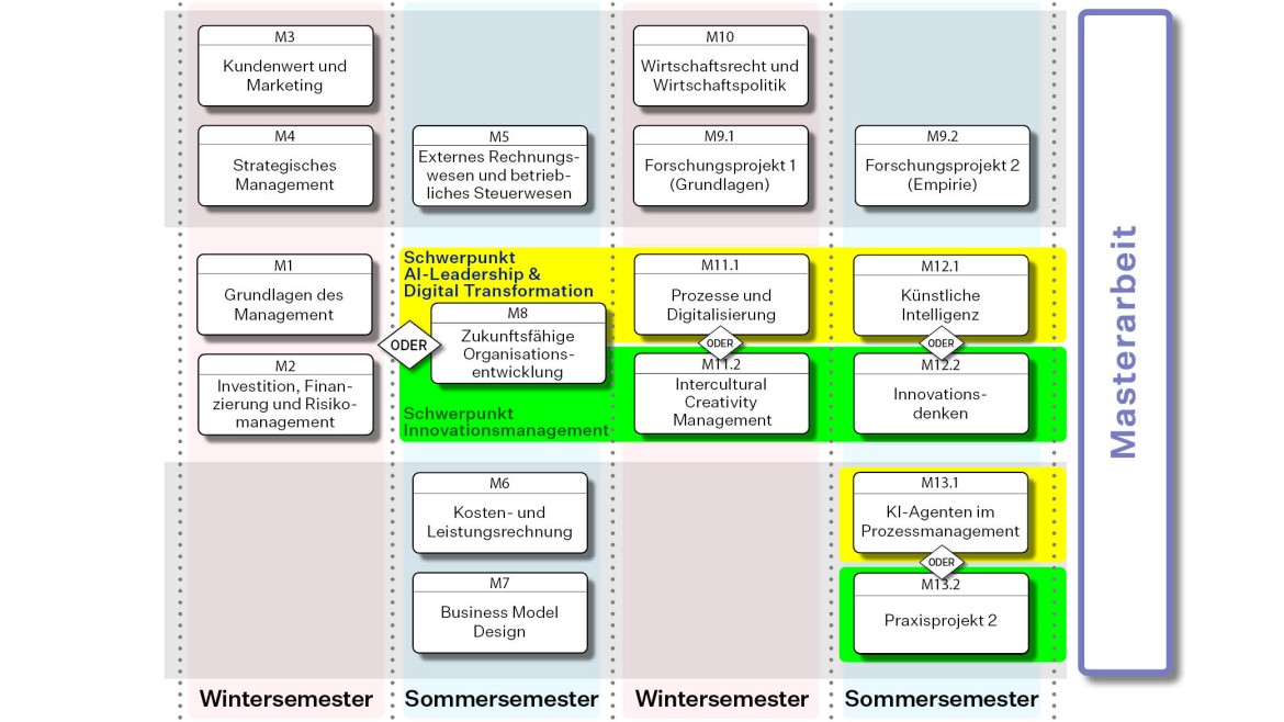 Das Studium ist im Regelfall auf fünf Semester mit 14 Modulen ausgelegt.